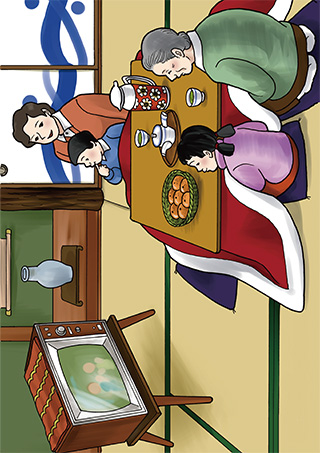 《懐かしの暮らしぬり絵》 ストーブに当たる