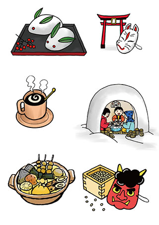 《絵手紙ぬり絵》 菜の花・いちご・桜餅・桜・お茶