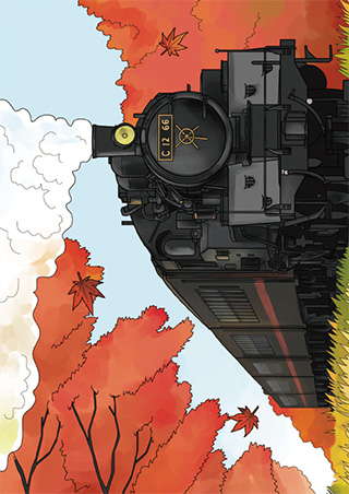 《美しい日本の風景ぬり絵》 SLと秋の風景