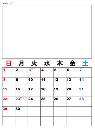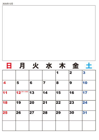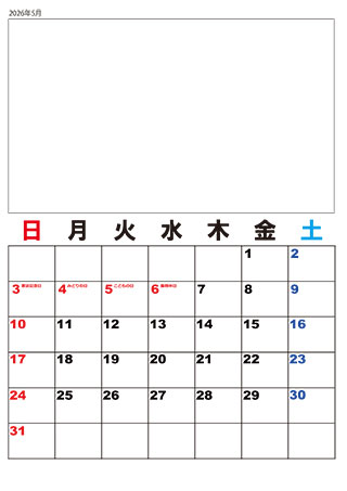 2026年カレンダー(カラー)