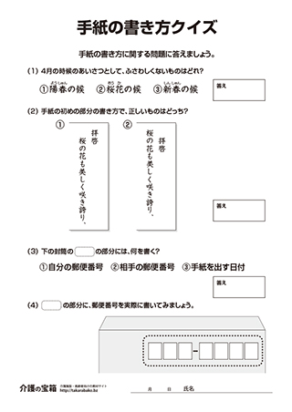 手紙の書き方クイズ