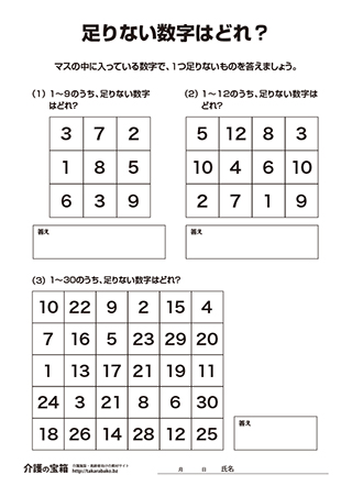 足りない数字はどれ?