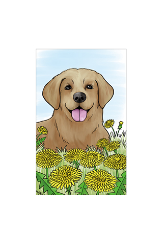 《カレンダー犬ぬり絵》 犬とタンポポ