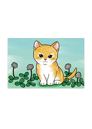 《カレンダー猫の12ヶ月ぬり絵》 猫とクローバー