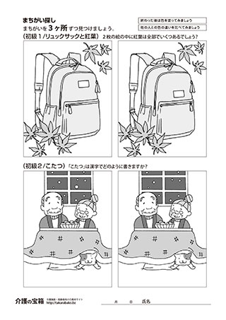 まちがい探し(初級1/やじろべえ・初級2/アケビ)