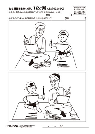 左右反転まちがい探し12ヶ所 (上級/絵を描く)