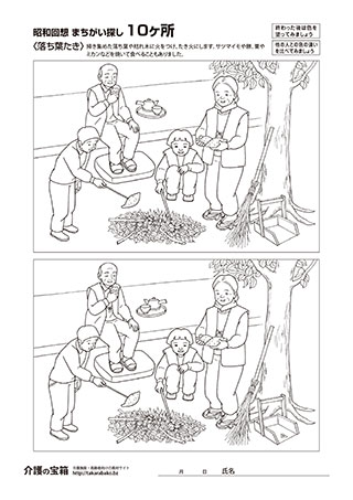 昭和回想 まちがい探し10ヶ所〈落ち葉たき〉