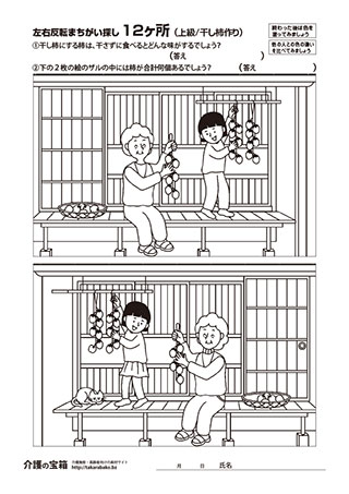 左右反転まちがい探し12ヶ所 〈上級/干し柿作り〉