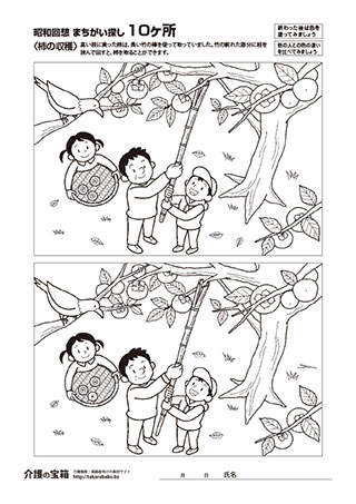昭和回想 まちがい探し10ヶ所〈柿の収穫〉