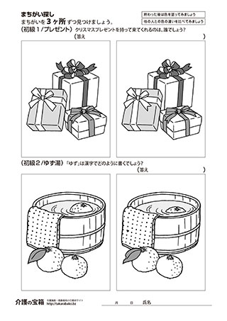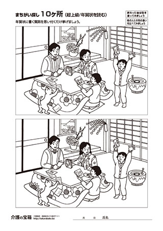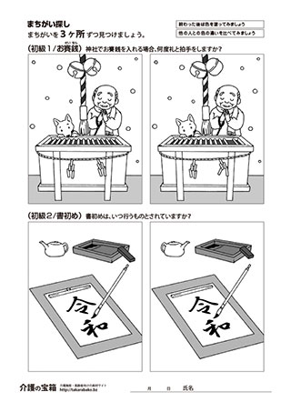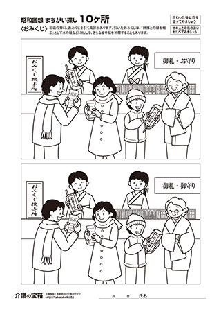 間違い探し(初級/お賽銭・書初め)