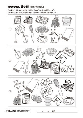 まちがい探し(8ヶ所・ないもの探し)