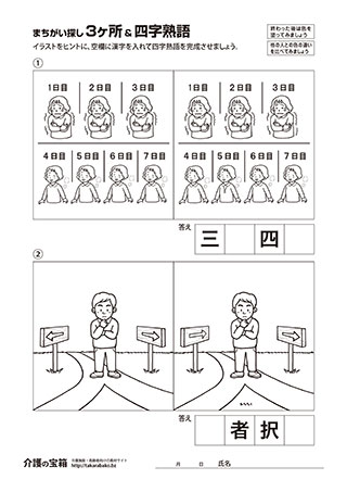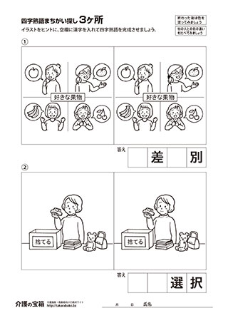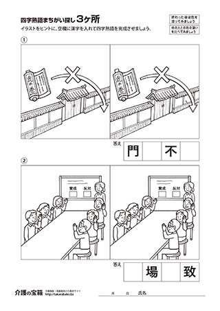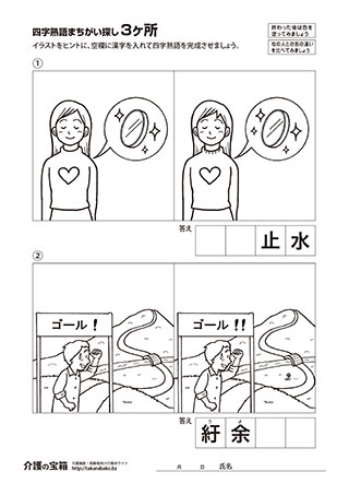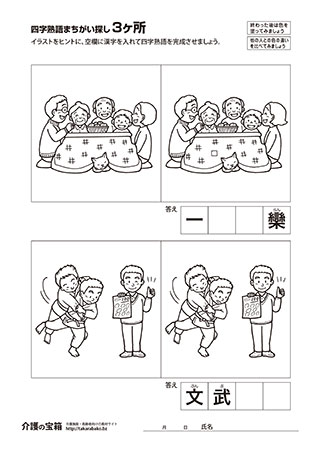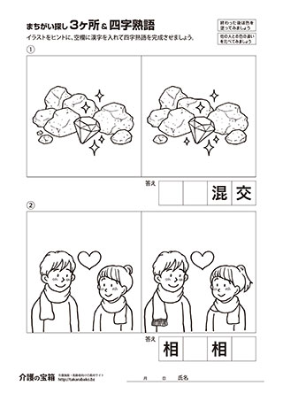 まちがい探し 3ヶ所 & 四字熟語