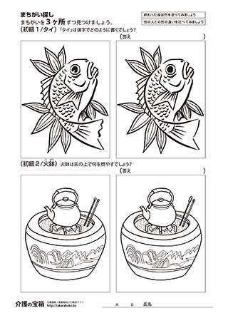 まちがい探し(初級1/タイ,初級2/火鉢)