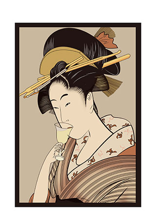 《くっきりぬり絵》 喜多川歌麿「名所腰掛八景・梅ヶ香」