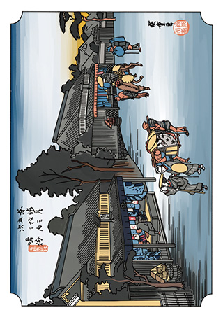 《浮世絵風ぬり絵》 弥次さん喜多さん(東海道中膝栗毛)