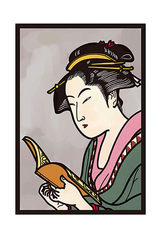 《くっきりぬり絵》喜多川歌麿 婦女人相十品・文読む女
