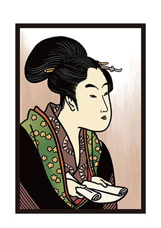《浮世絵風ぬり絵》 喜多川歌麿・歌撰戀之部深く忍戀