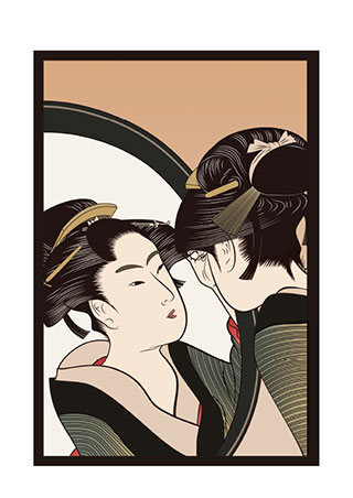 《くっきりぬり絵》 喜多川歌麿「姿見七人化粧(鬢直し)」